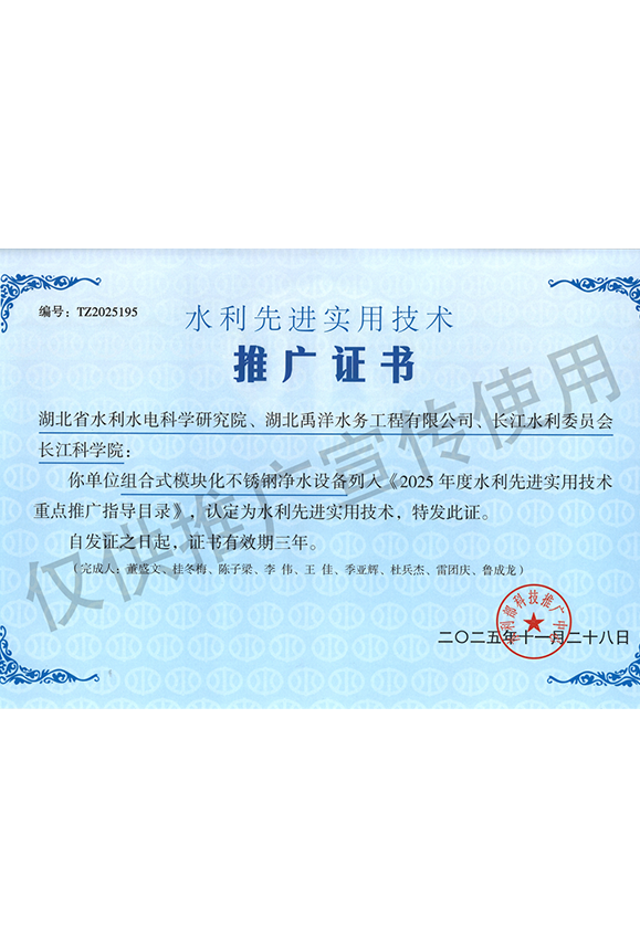 公司致力于水处理技术的研发和应用推广,研发生产基地超2000平方米,已拥有2项发明专利、18项实用新型专利、8项软件著作权;拥有多年从事安全饮水水处理技术研究的专业团队和一支由科研机构专注于研究解决城乡自来水厂建设与净水技术难题的专家学者组成的技术顾问团队;与长江科学院农水所、湖北水利水电科学院等建立了产学研联盟,是湖北省水利水电科学院农村供水产学研基地。