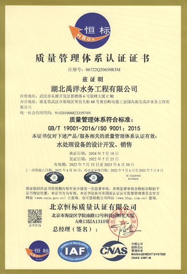 湖北禹洋水务工程有限公司成立于2009年,总部位于中国武汉,是一家专业提供水系统整体解决方案的高新技术企业。禹洋水务以专业的研发生产基地、系统的整体解决方案、先进的信息管理平台、优质的运营维护服务为核心竞争力,已形成以工程设计建设、设备研发制造、智能信息系统运营为核心业务的水处理综合型服务企业。